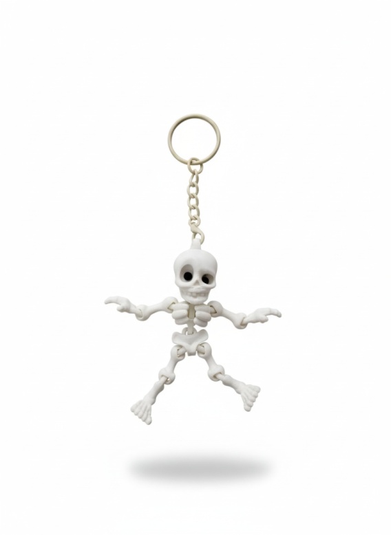 Lekki i elastyczny brelok w kształcie szkieletu z ruchomymi kończynami — trochę straszny, trochę zabawny, idealny do kluczy, plecaka albo auta. Wprowadza halloweenowy vibe przez cały rok.